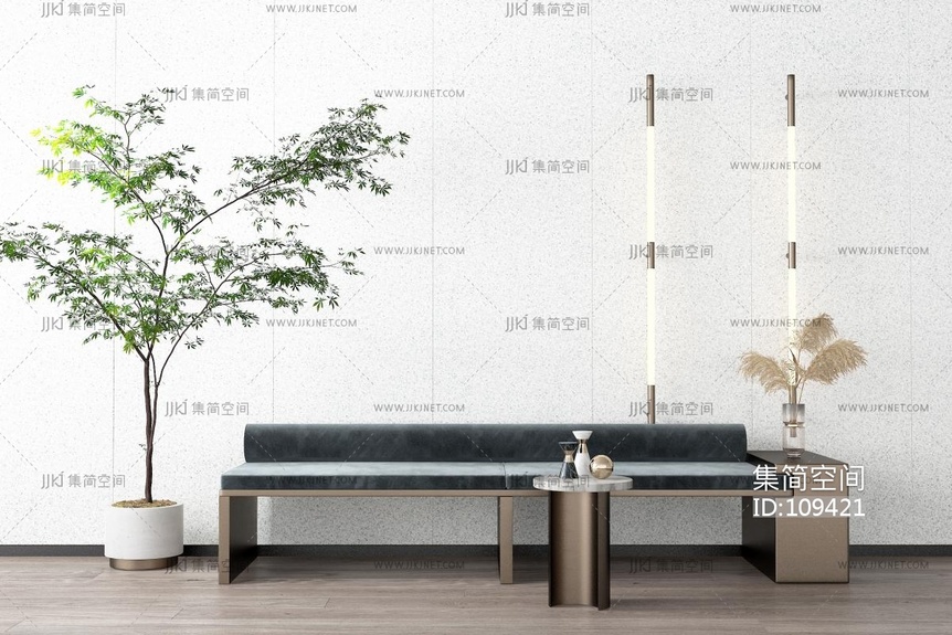 现代长凳,椅子,公共座椅,盆栽,壁灯换鞋凳 (2) 3d模型下载 [模型ID:109421]