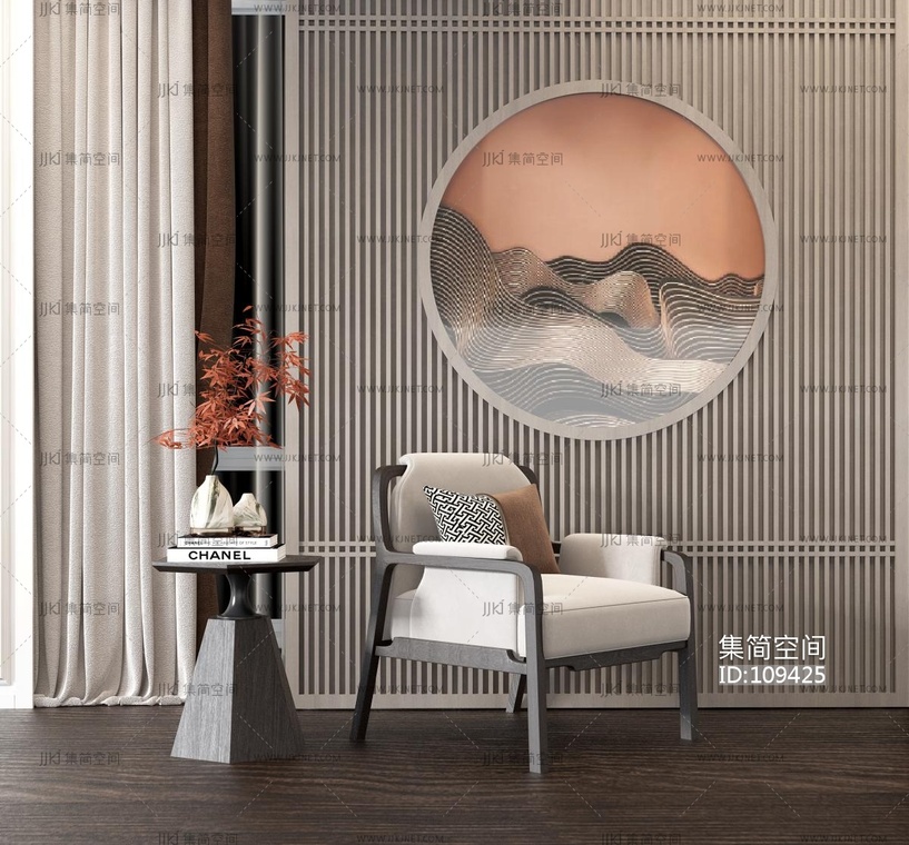 新中式单椅,椅子, 3d模型下载 [模型ID:109425]