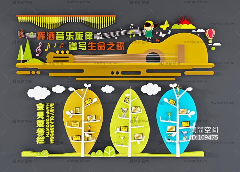 现代儿童音乐教室文化墙,宣传墙,宣传栏,展示墙 3d模型下载 [模型ID:109475]