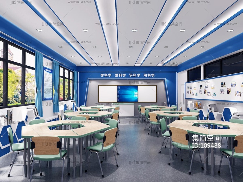 现代教室,现代科技风教室, 3d模型下载 [模型ID:109488]