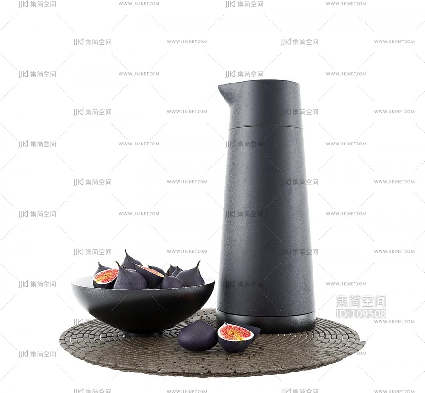 现代果盘摆件,保温壶,果盘,食物,水壶 3d模型下载 [模型ID:109508]