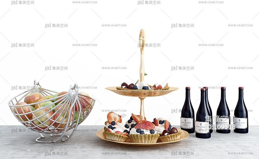 现代酒水食品,食物蛋糕,食物托盘,水果 3d模型下载 [模型ID:109518]