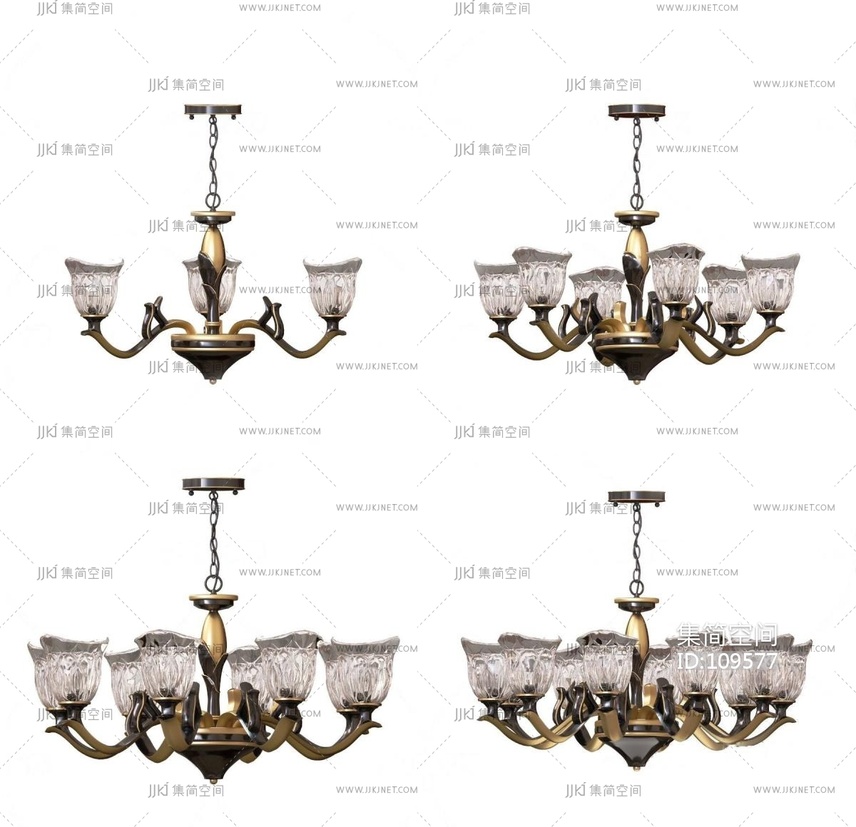 欧式美式铁艺轻奢玻璃多头吊灯 3d模型下载 [模型ID:109577]