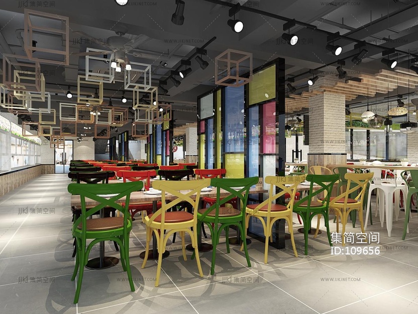 工业LOFT餐厅 3d模型下载 [模型ID:109656]