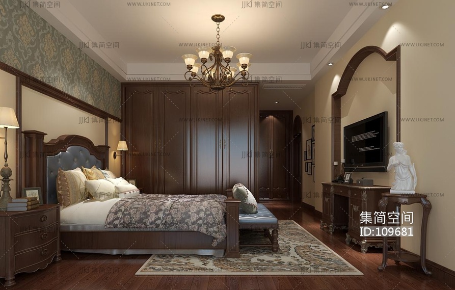 古典美式卧室 3d模型下载 [模型ID:109681]