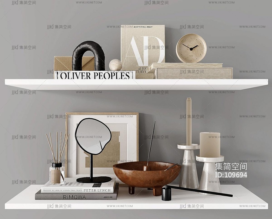 北欧书籍,烛台,雕塑,饰品,摆件 3d模型下载 [模型ID:109694]