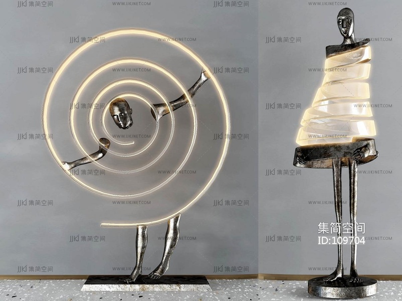 现代艺术创意人物雕塑落地灯 3d模型下载 [模型ID:109704]