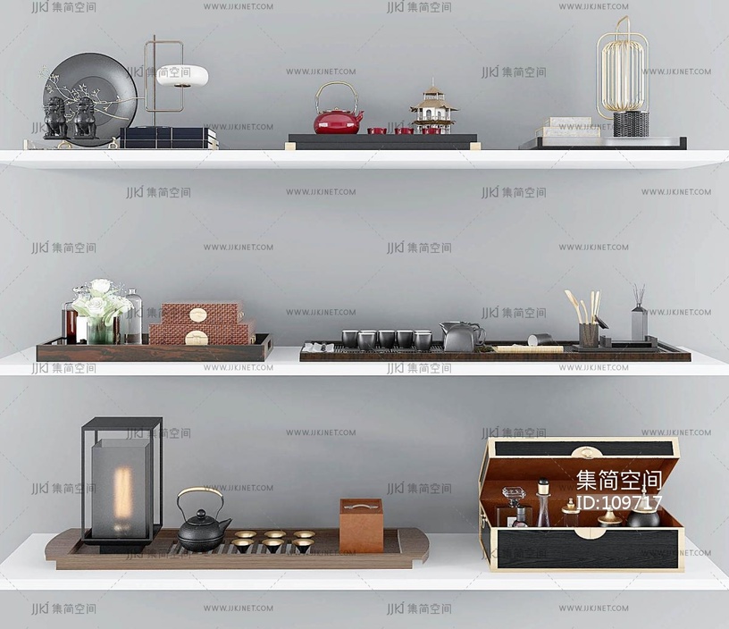 新中式托盘饰品摆件组合,茶具 3d模型下载 [模型ID:109717]