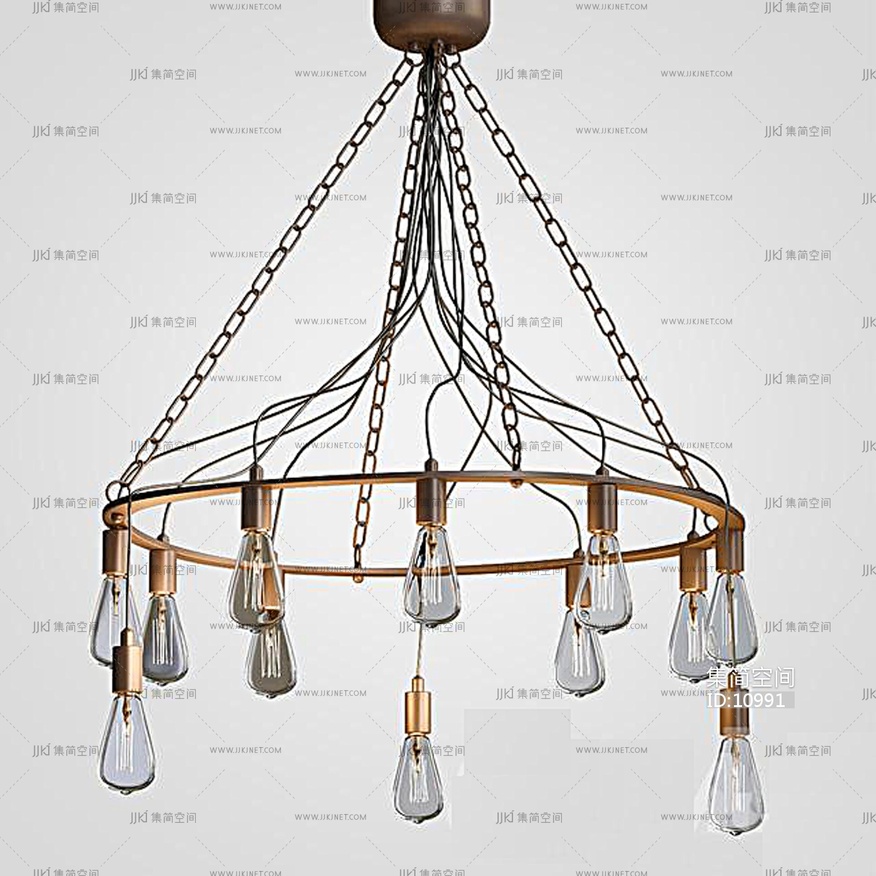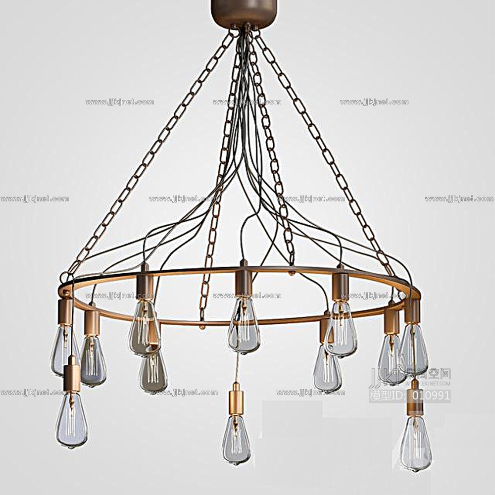 30工业风美式灯泡吊灯 3d模型下载 [模型ID:10991]