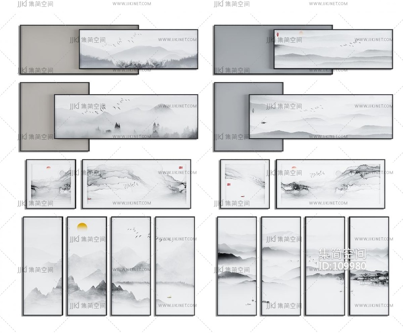 新中式山水装饰挂画 3d模型下载 [模型ID:109980]
