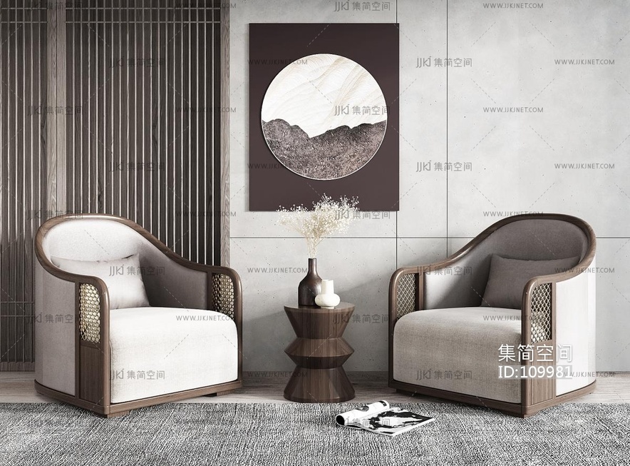 新中式单人沙发, 3d模型下载 [模型ID:109981]