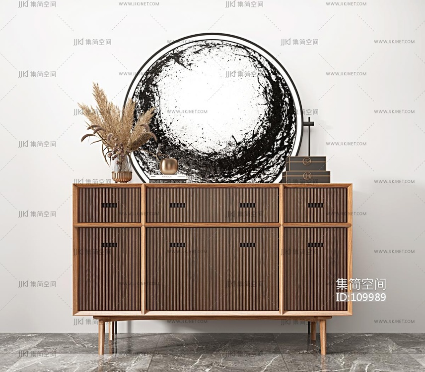 新中式实木玄关柜,装饰柜, 3d模型下载 [模型ID:109989]