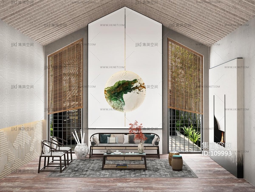 新中式会客厅 3d模型下载 [模型ID:109993]