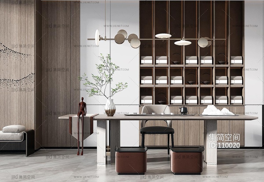 现代书房 书桌椅 壁柜 挂画 吊灯 书 盆栽 摆件3d模型下载