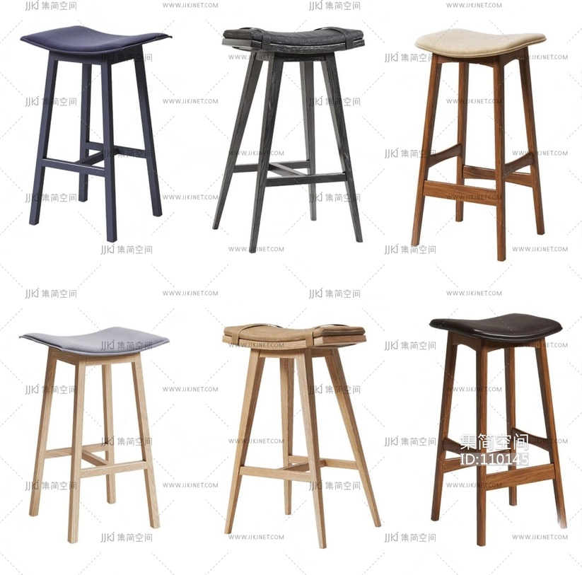 现代实木吧椅 3d模型下载 [模型ID:110145]