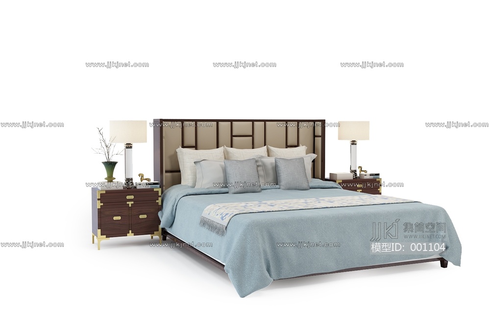 50-1024新中式床3d模型下载