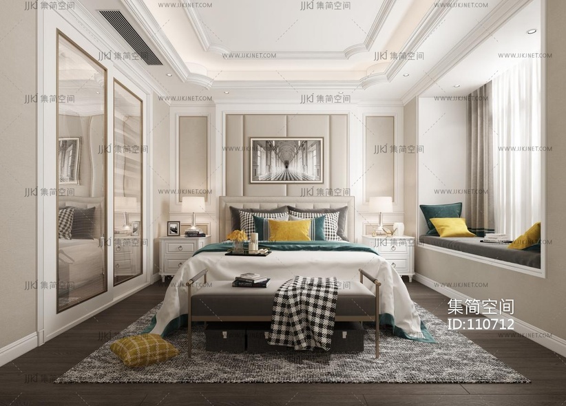简欧轻奢卧室 3d模型下载 [模型ID:110712]