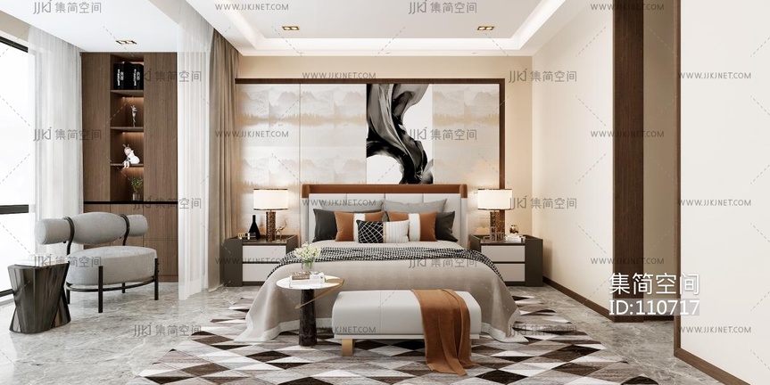 现代公寓卧室, 3d模型下载 [模型ID:110717]
