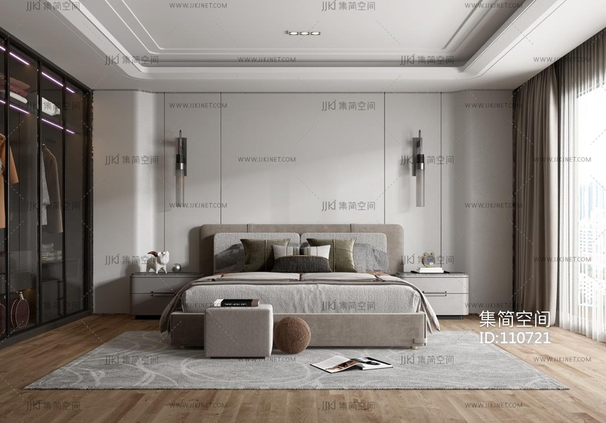 6法式中古家居卧室_主卧_飘窗卧室_高级灰卧室3D模型cr3d模型下载