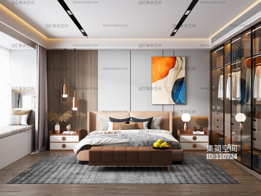 现代卧室,, 3d模型下载 [模型ID:110724]