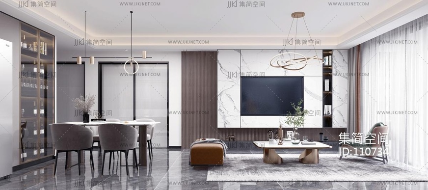 现在轻奢客餐厅 3d模型下载 [模型ID:110734]
