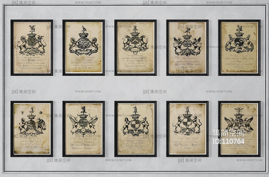 新古典美式陈旧挂画组合, 3d模型下载 [模型ID:110764]