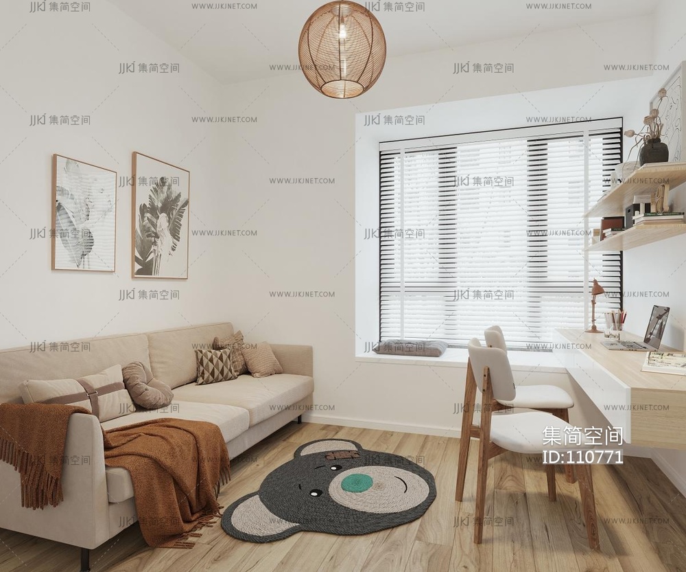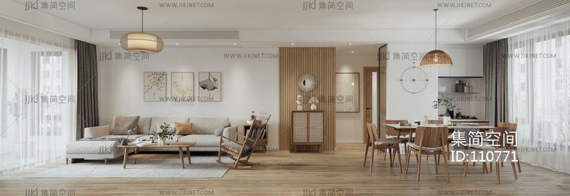 日式客餐厅,卧室,书房 3d模型下载 [模型ID:110771]