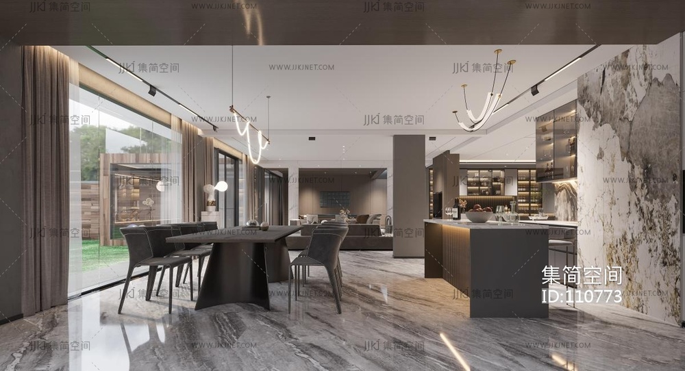 现代客餐厅 3d模型下载 [模型ID:110773]