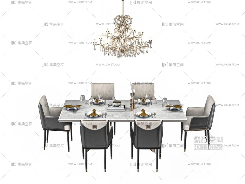 简欧轻奢大理石餐桌椅 3d模型下载 [模型ID:110850]