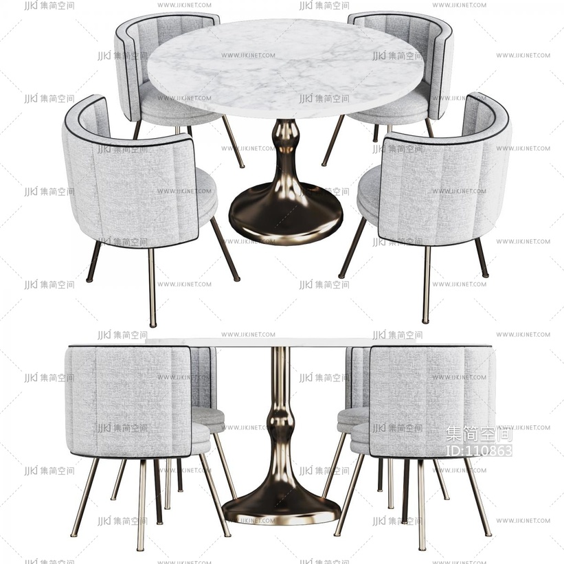 现代轻奢圆形餐桌椅 3d模型下载 [模型ID:110863]