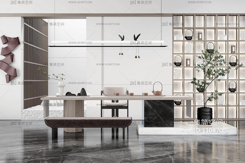 茶桌椅茶台小吊灯树C+V3d模型下载