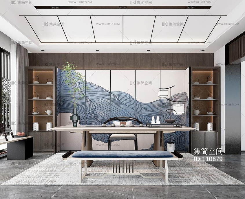 新中式茶室、 3d模型下载 [模型ID:110879]