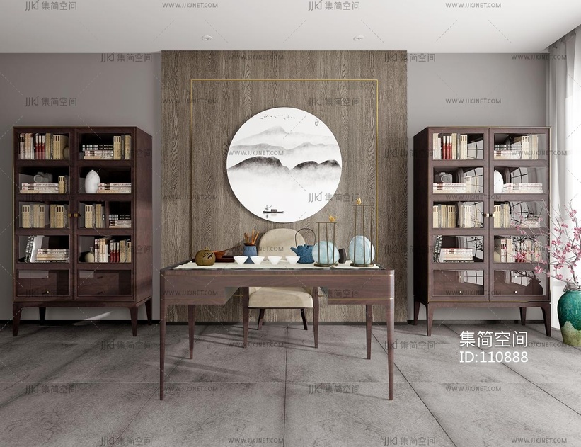 新中式书房, 3d模型下载 [模型ID:110888]