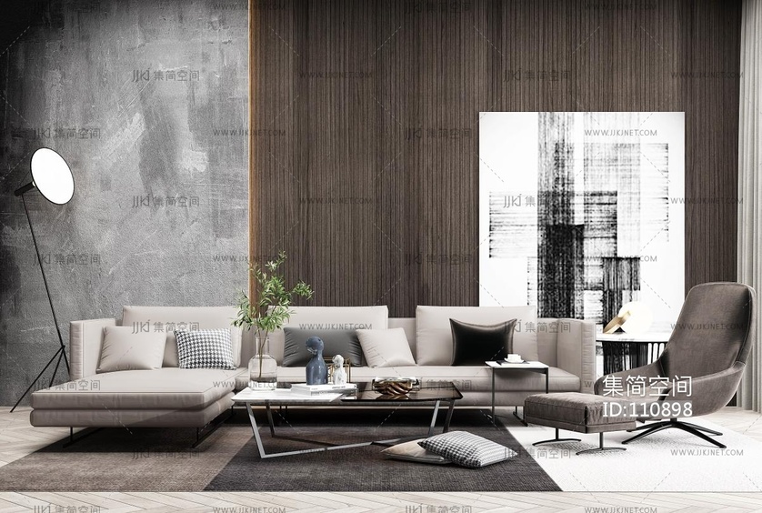 现代转角沙发茶几组合 3d模型下载 [模型ID:110898]