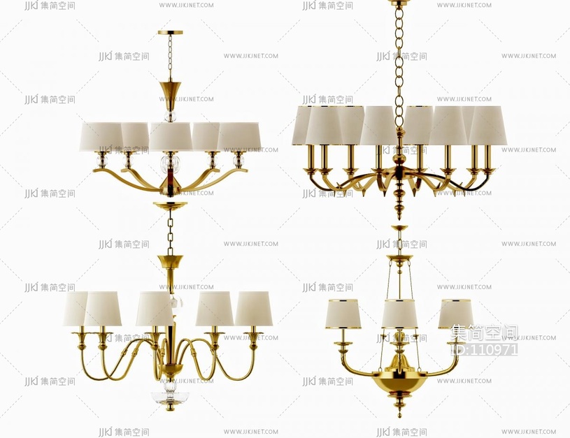 美式欧式法式铁艺吊灯组合 3d模型下载 [模型ID:110971]
