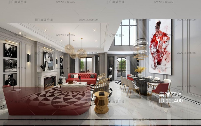 欧式别墅客餐厅 3d模型下载 [模型ID:111400]