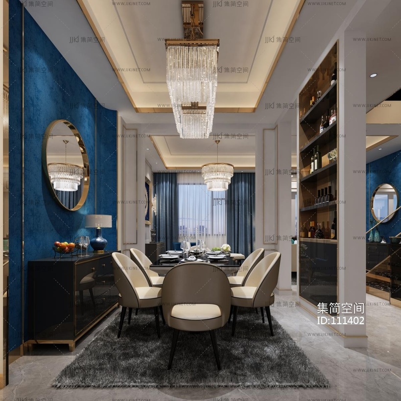 中古风客厅,美式客厅,圆形茶几,装饰画,移动电视,3d模型下载