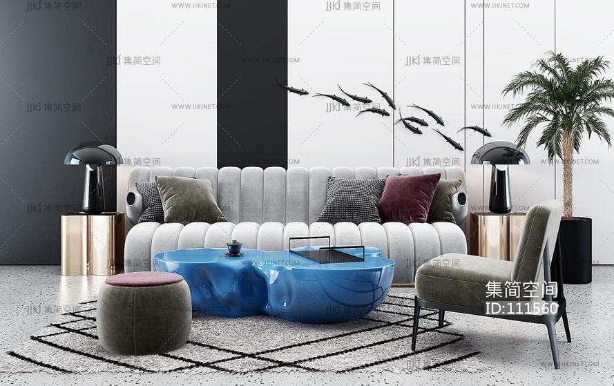 北欧沙发组合,布艺沙发茶几组合,沙发 3d模型下载 [模型ID:111560]