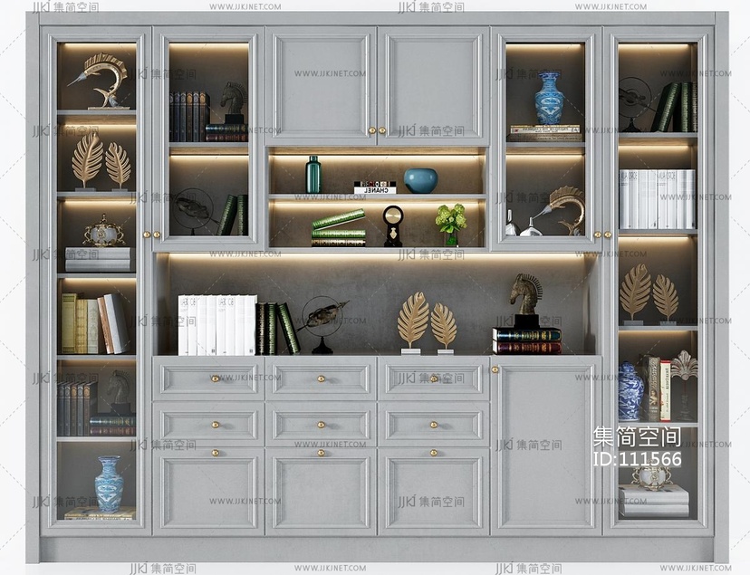 简美欧式美式装饰书柜, 3d模型下载 [模型ID:111566]