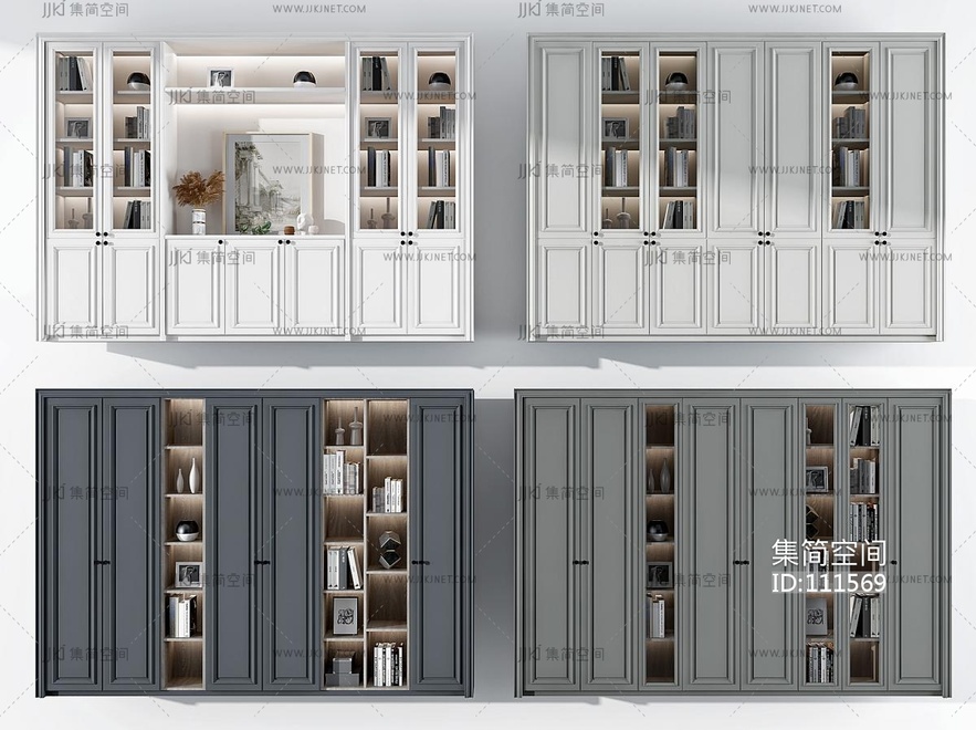 美式欧式风格书柜,书柜, 3d模型下载 [模型ID:111569]