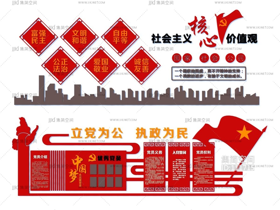 新中式党建宣传墙 3d模型下载 [模型ID:111715]