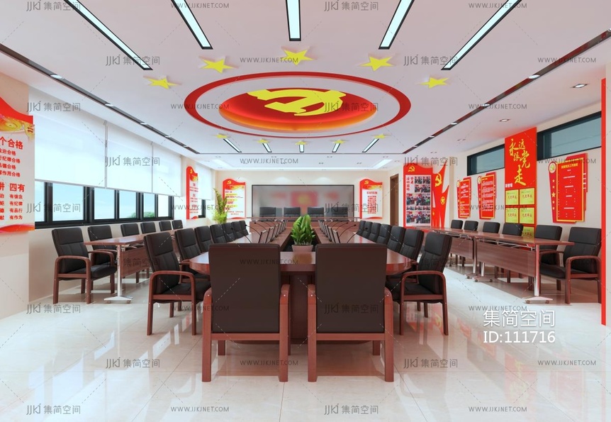 现代党建会议室 3d模型下载 [模型ID:111716]