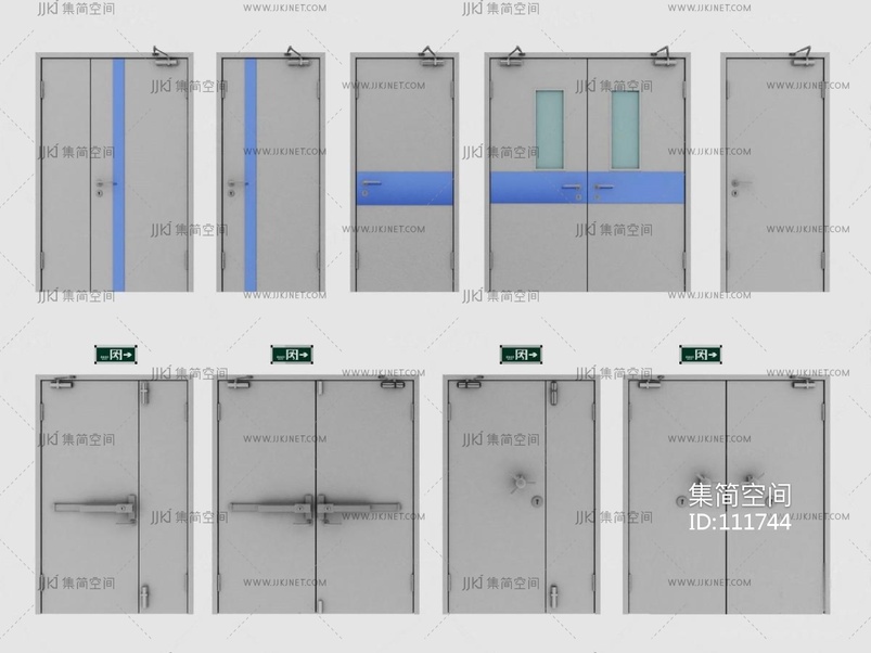 现代玻璃门玻璃双开门3D模型3d模型下载