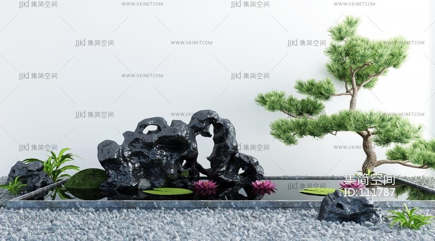日式假山山水水景,庭院景观 3d模型下载 [模型ID:111787]