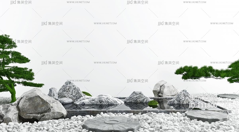 新中式假山山水,玄关造景,景观小品 3d模型下载 [模型ID:111800]