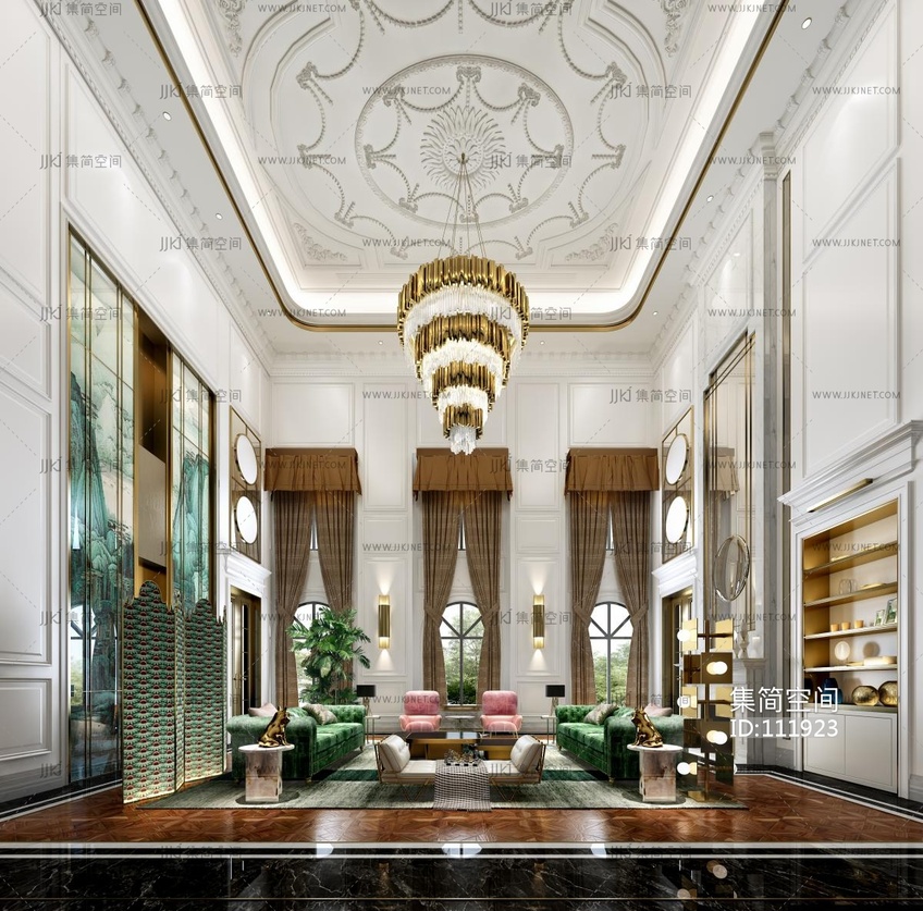 法式欧式别墅客厅 3d模型下载 [模型ID:111923]