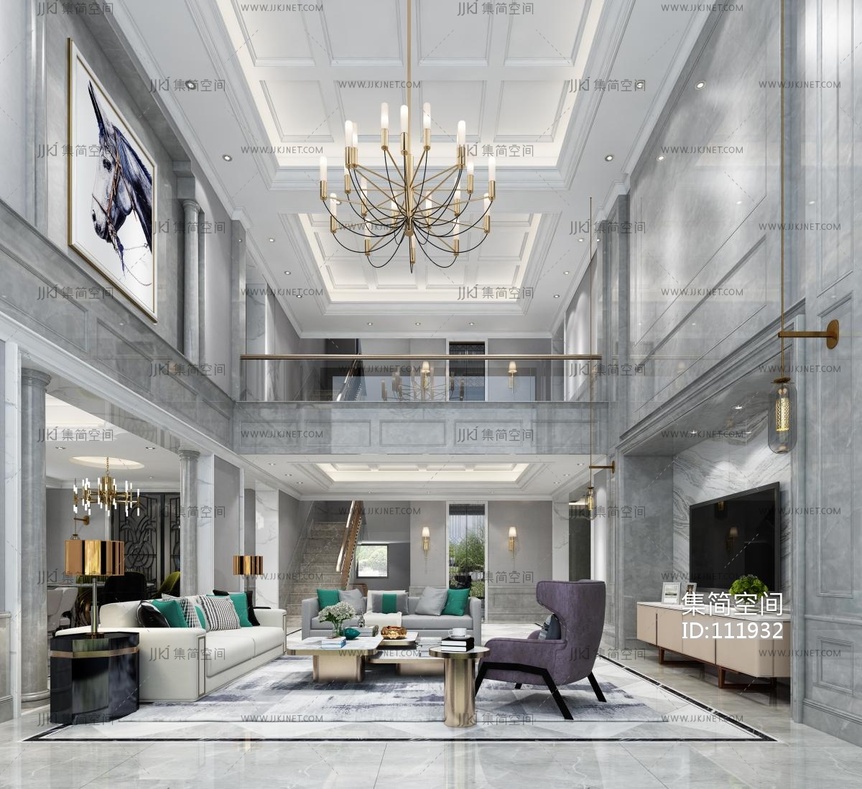 欧式别墅客厅 3d模型下载 [模型ID:111932]