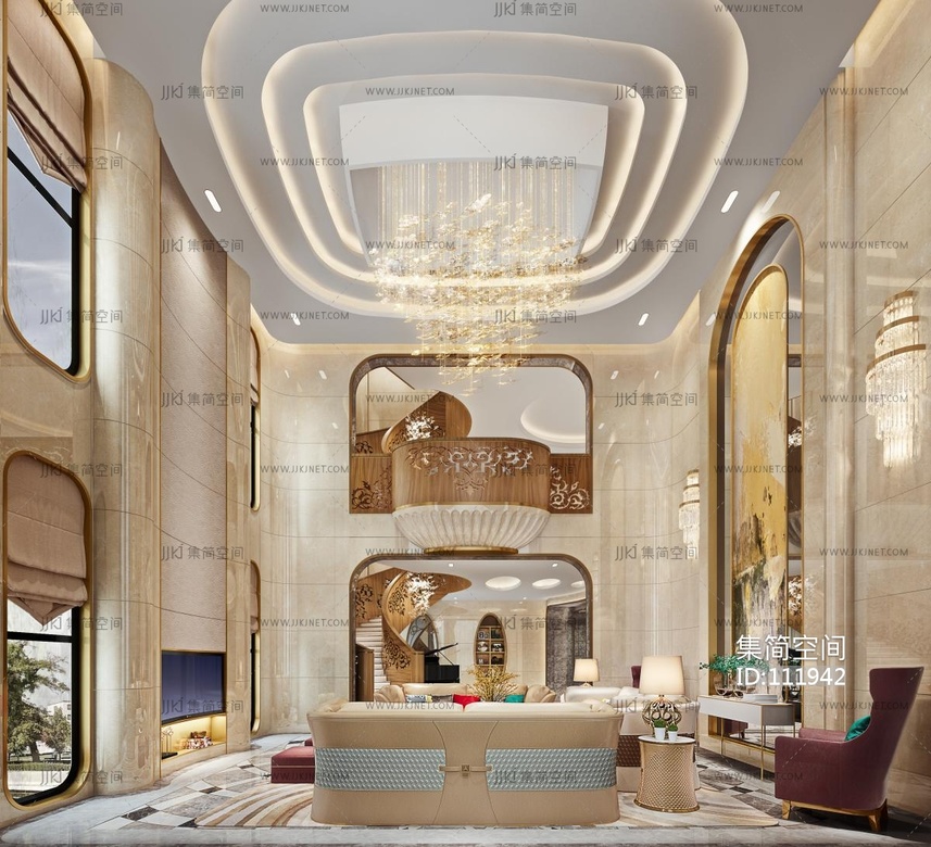 欧式别墅轻奢客厅 3d模型下载 [模型ID:111942]