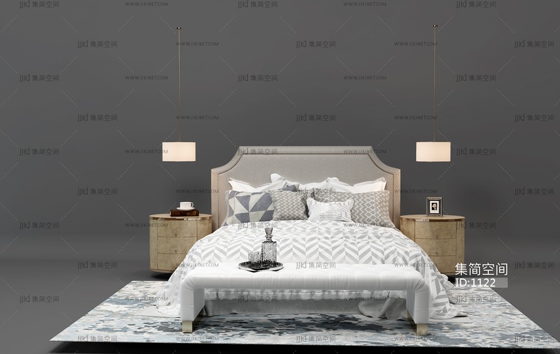 13-现代轻奢双人床_布艺_皮质_轻奢双人床集合3D模型3d模型下载