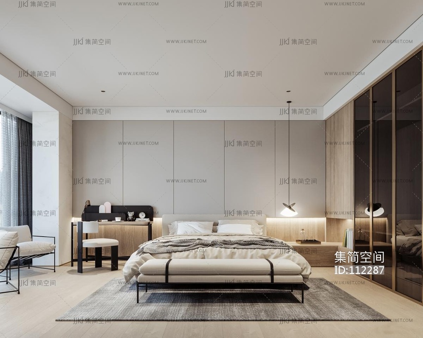 卧室,轻奢,暗黑风,现代轻奢卧室双人床,懒人沙发法式卧室3d模型下载